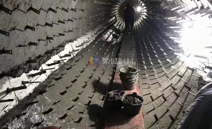 4.擋輪:擋輪為一限制裝置,限制氧化鋅回轉窯窯體在托輪上的位置,但它不能制止窩體的上下移動。
